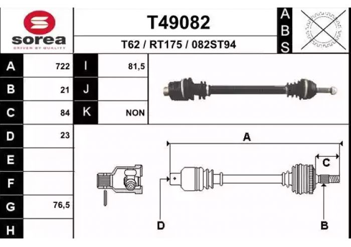 Привод правый SOREA T49082 на RENAULT